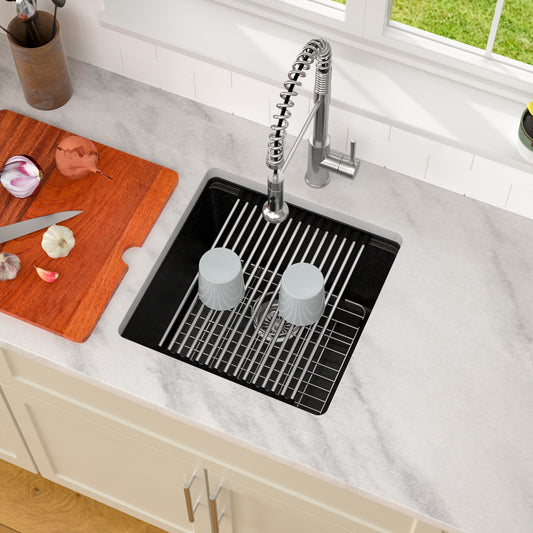 Dcolora 18 Inch Undermount Matte Black Wet Bar Sink Single Bowl Small Kitchen Sink Granite Composite Sink with Workstation #DC-GU0002BS