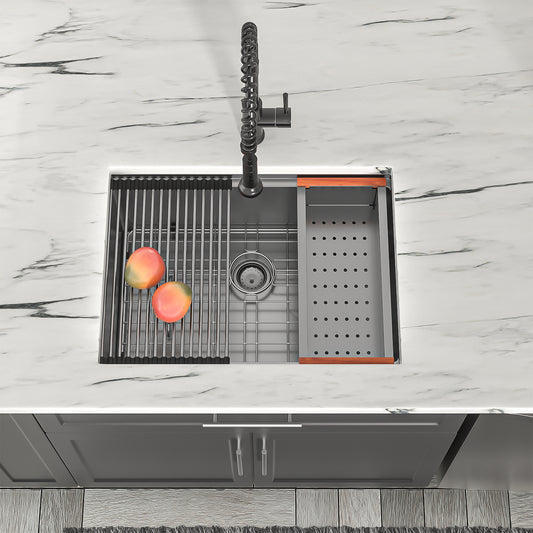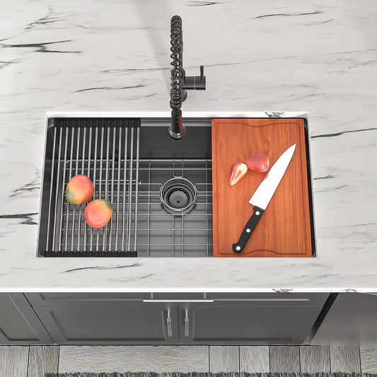 Dcolora 27 Kitchen Sink Gunmetal Black Stainless Kitchen Sink Undermount Workstation Gunmetal Black Stainless Steel 16 Gauge Single Bowl Kitchen Sink Basin (27"x19"x10"), DC-U7707