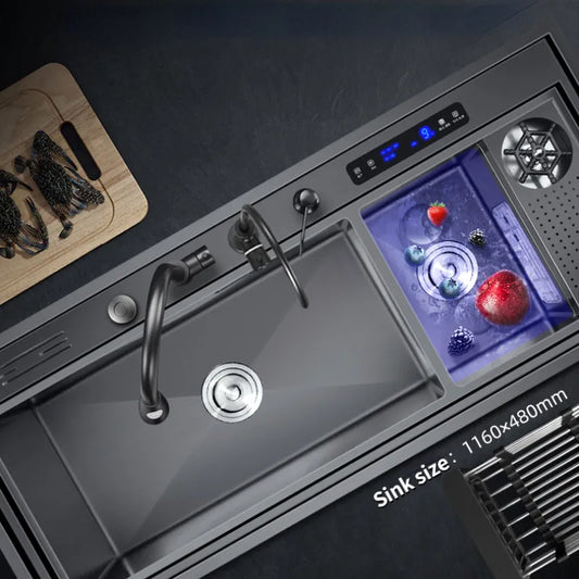 Dcolora Black Sink Ultrasonic Sink Washing Fruit Vegetable Seafood 3 in 1 Multifunction Stainless Steel Smart Kitchen Sink