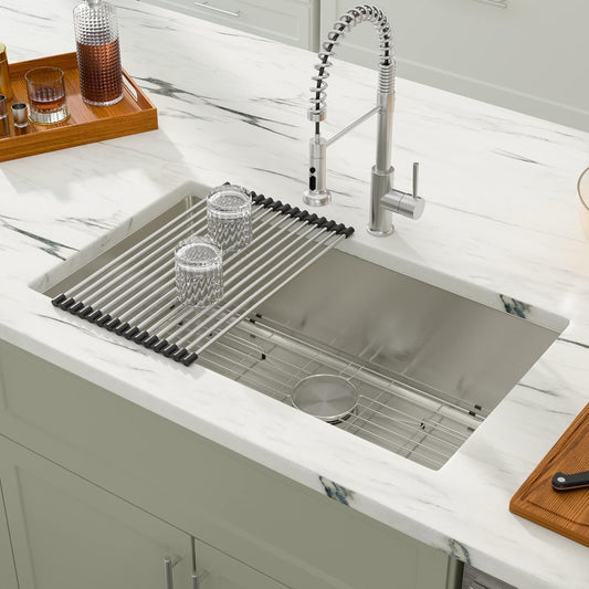 Dcolora 27 Inch Undermount Kitchen Sink 16 Gauge Stainless Steel Deep Large Single Bowl Under Counter Sink, 27"x18"x10" Rounded Corner, DC-U7713