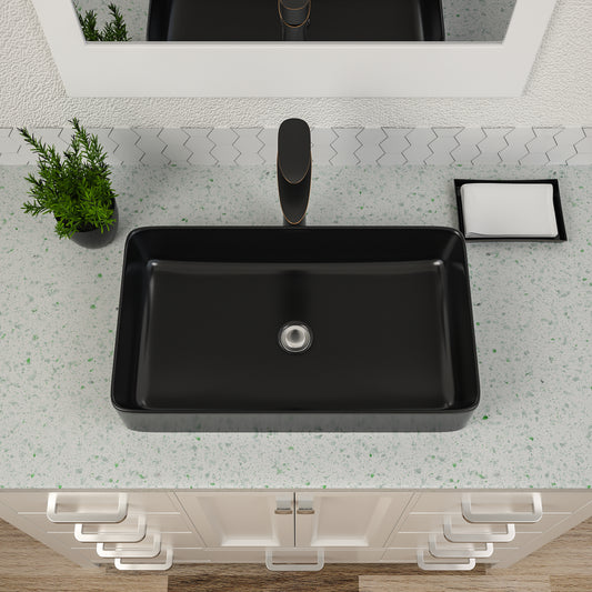 Black Vessel Sink - Dcolora 24 x 14 Bathroom Sink Matte Black Rectangular Above Counter Vessel Sink Ceramic Countertop Lavatory Vanity Bowl Sink Art Basin Sink