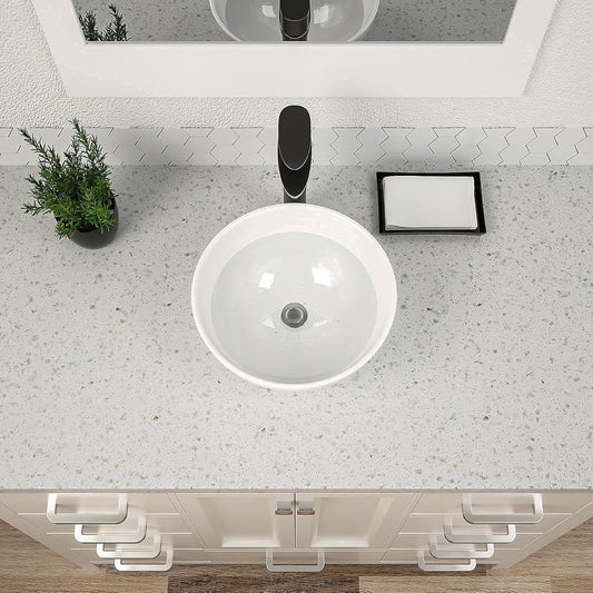 Dcolora 16 Inch Bowl Sinks for Bathrooms Round Vessel Sink Countertop White Ceramic Porcelain Bathroom Sink Bowl Above Counter Vanity Sink Basin, 16"x16" DC-V8896